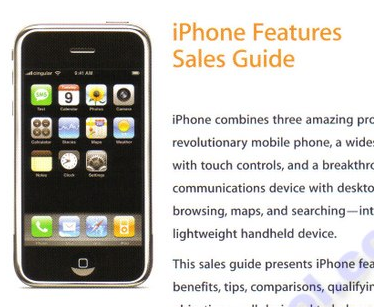 „This sales guide presents iPhone features and benefits, tips, comparisons, qualifying questions, and objections – all designed to help you sell iPhone. The guide is written in a concise format suitable for use in training or in time-critical sales situations..“