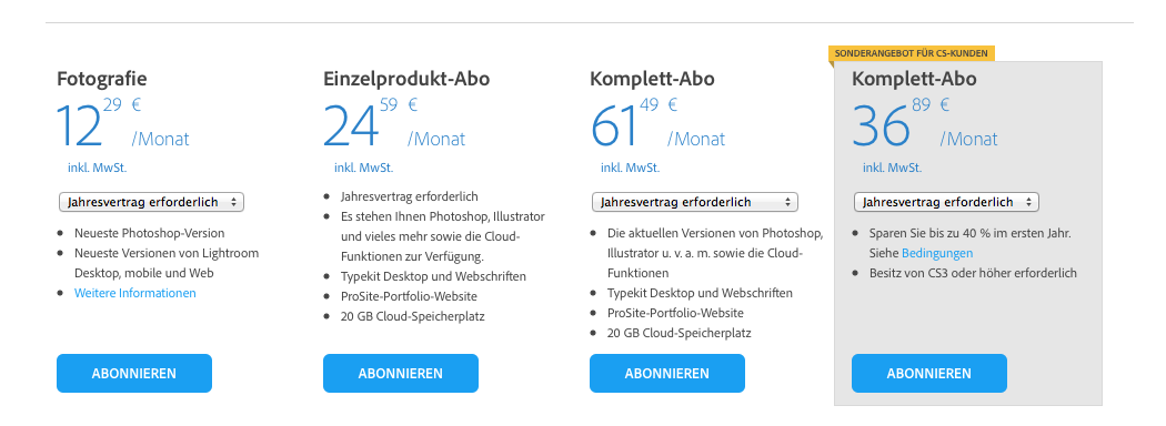Alle die jedoch auf die neuesten RAW-Formate angewiesen sind, ihre Bilder zuhause und unterwegs bearbeiten wollen, eine Cloud-Sicherung nutzen wollen und entsprechend bereit sind dafür zu zahlen, kann man die Adobe Creative Suite Lösung nur empfehlen. Der Preis ist hoch, der Funktionsumfang jedoch auch.